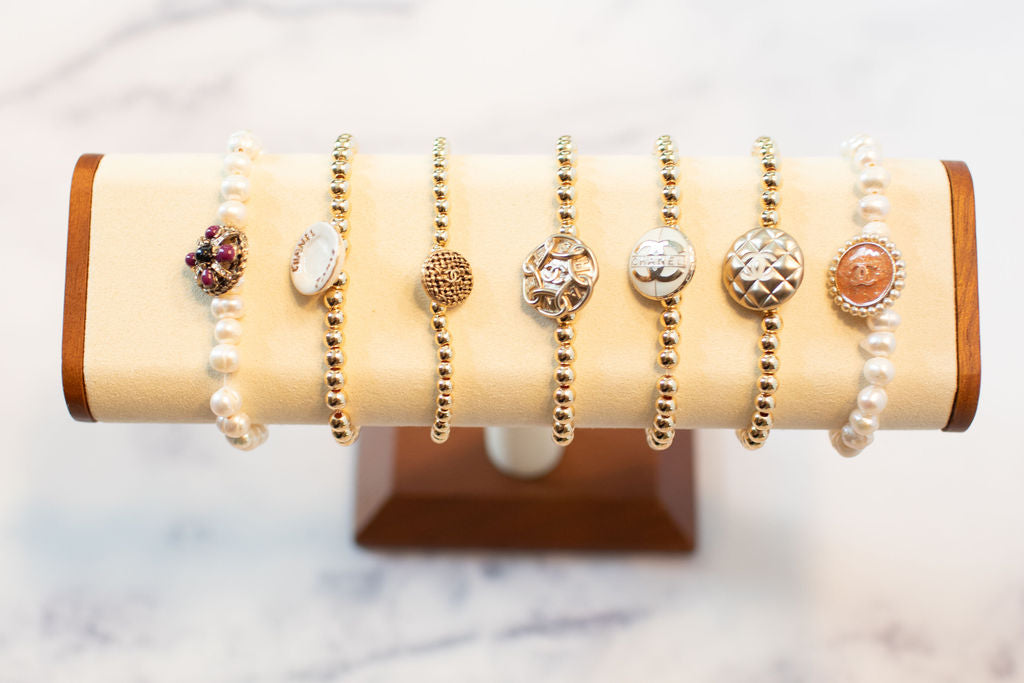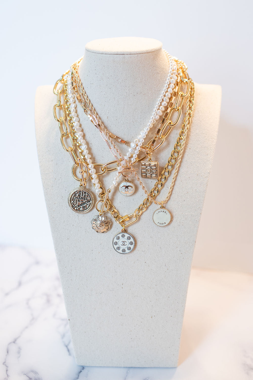 All our repurposed materials are sourced from 100% authentic designer materials, guaranteed. Necklace chains and beaded bracelets are either 18K or 14 K gold filled and plated and also 925 silver chains and stainless steels.